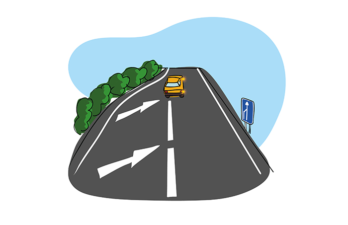 Ante esta marca, el conductor debe prepararse para cambiar de carril de forma segura: observar los espejos retrovisores (especialmente el del lado al que quiere desplazarse), señalizar la maniobra con el intermitente, ceder el paso si es necesario y cambiar al carril contiguo de forma progresiva. Suele ir acompañada de la señal vertical Final de carril (S-52).