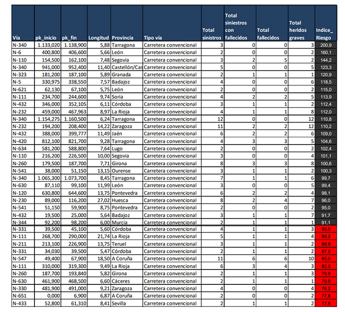 Los tres puntos con más riesgo de la Red de Carreteras del Estado son, en Tarragona, en la N-340 en la intersección con la T-323; en León, en la N-6, en tramo que va de la A-6 a la LE-5220, y en Segovia, en la N-110 a su paso por la SG-V-6112.
