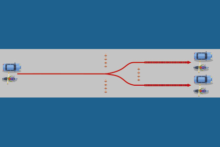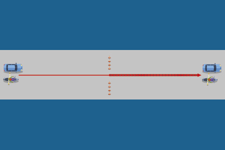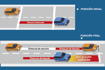 COMPROBACIÓN DE LA DISTANCIA DE SEGURIDAD CON COCHE SEÑUELO (Sólo en el curso de turismos) Ofrece al aspirante la prueba de la importancia de mantener una distancia de seguridad frontal adecuada. |