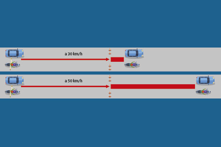 FRENADA A 30 Y A 50 KM/H Esta prueba será ejecutada por el monitor. Demuestra cómo influye la velocidad en la distancia de frenado.