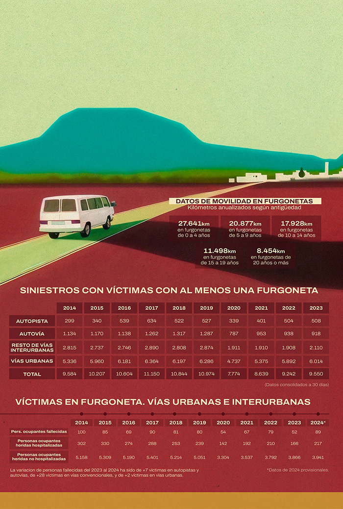 - En 2024, el 9% de las furgonetas implicadas en sinietros con víctimas en vías interurbanas tenían la ITV caducada.