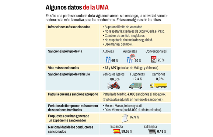 Todo esto consolida un cuerpo civil con alta capacitación y especialización en el tráfico que llama la atención en el resto de países de nuestro entorno, en especial en Francia, que si bien en ocasiones utiliza las aeronaves de la Gendarmería en operativos relacionados con la circulación, no dispone de una unidad similar para cumplir con mandatos como los que tiene la UMA: “Disminuir el número de víctimas mortales y accidentes en la carretera, mejorar la movilidad, colaborar con un entorno sostenible, proteger a los usuarios vulnerables y concienciar a los conductores en actitudes de seguridad vial positiva”, explica Suárez.